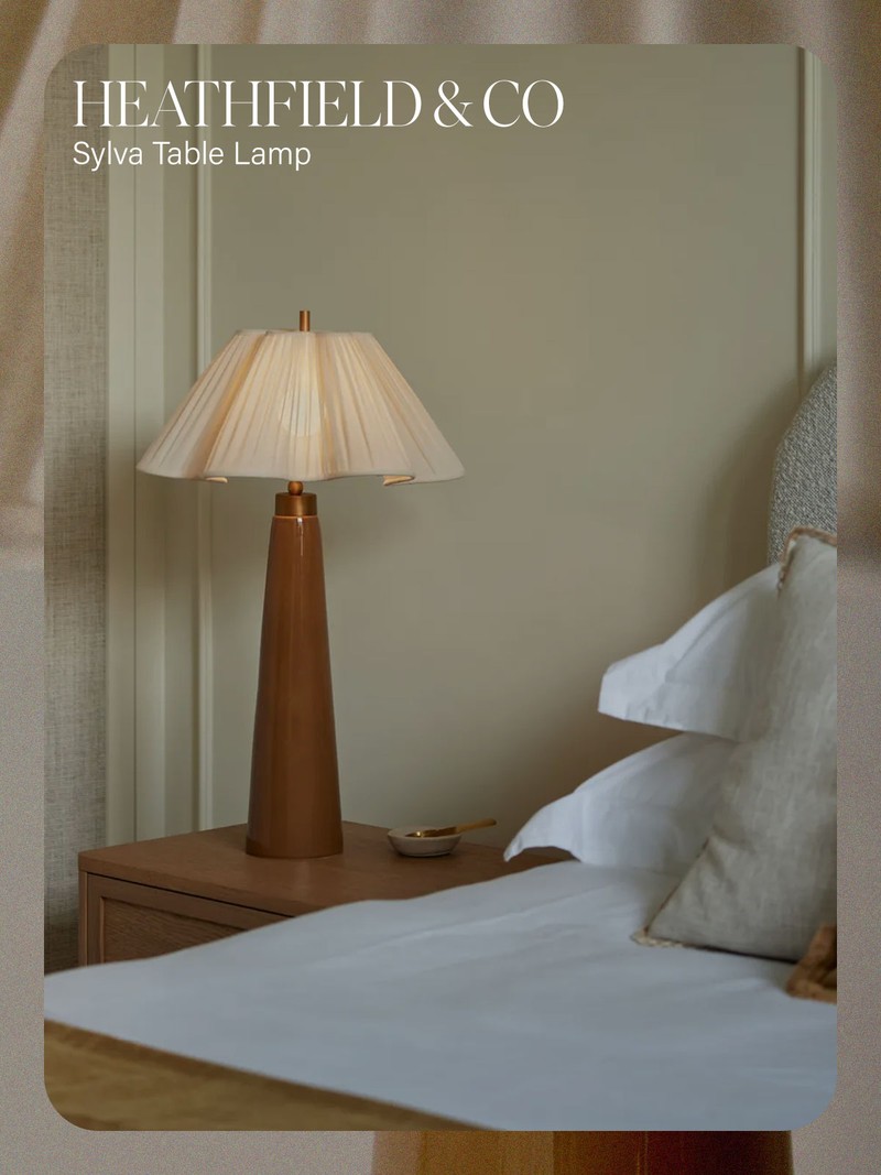 The Sylva table lamp from Heathfield & Co offers an elevated sense of sculptural simplicity to a space with its beautifully considered design that feels both timeless and architectural. Defined by its elongated ceramic base and softly pleated shade, it plays with height and proportion in a way that feels effortlessly refined. The glazed finish adds a subtle luminosity, while its slender, organic silhouette brings a gentle nod to nature without feeling overly decorative. Perfect on a bedside table or flanking a console, it’s the kind of piece that grounds a scheme while adding a soft, atmospheric glow.