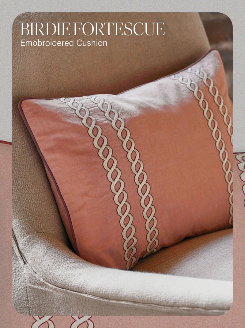 For a tactile layer in your room scheme, add the Rassi embroidered cushion from Birdie Fortescue. Defined by its intricate looped embroidery and soft pink palette, it brings warmth, texture and a subtle artisanal feel to any setting. Style it alone for impact or layer with contrasting prints for a more characterful look. It would also look gorgeous in an outdoor setting against a cream garden sofa.