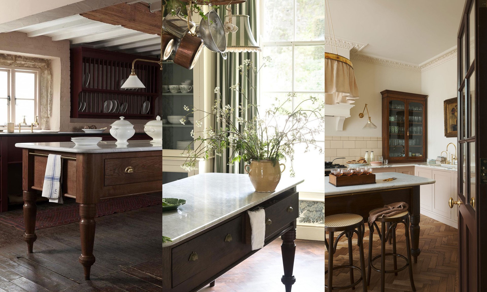 They are mainly using them as prep tables, centring them in the middle of the kitchen – just as you would an island. Lots are also choosing to add a gaselier pendant light above for the authentic country house vibe.