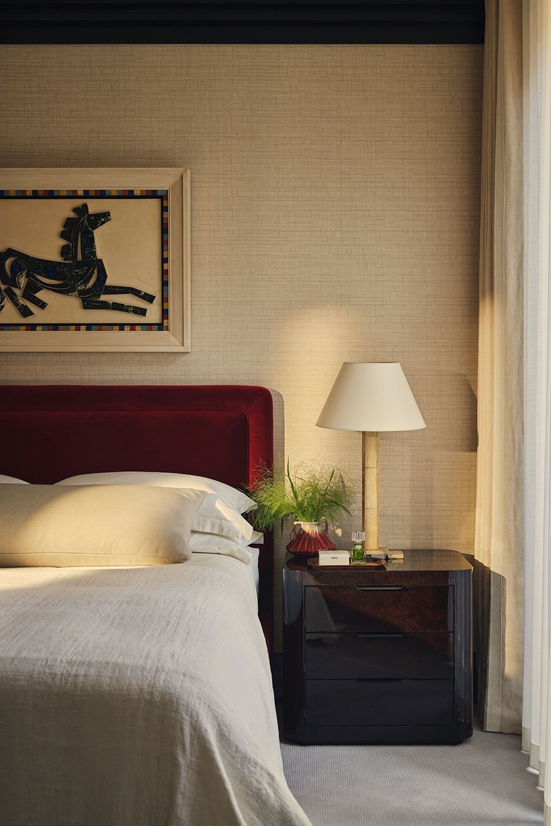 Lighting is crucial as it sets the mood and enhances architectural details. For a more refined approach, opt for sculptural pendant lights with brass or frosted glass, paired with structured wall sconces. At 60 Curzon, we used lighting to highlight textural contrasts, from the glow against bespoke joinery to the interplay of light on lacquered surfaces. Linear and geometric designs work well but so do organic, cascading chandeliers that soften the space.