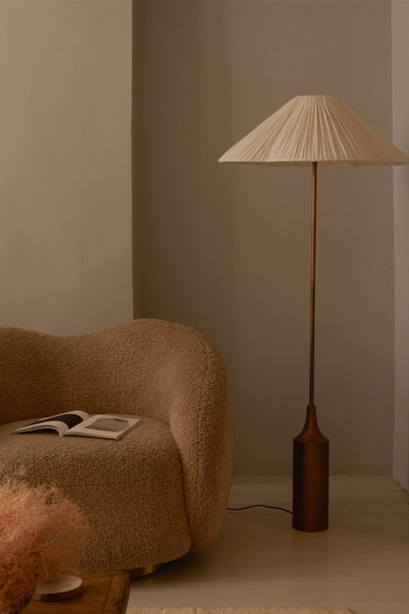 Lindi Aged Brass & Linen Scalloped Floor Lamp