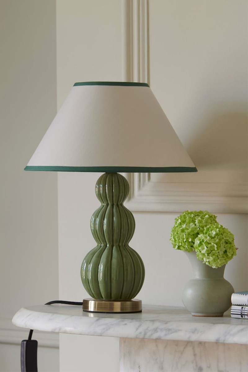 I have one of these on each beside table. The green feels calm in the bedroom but the glossy ceramic finish makes them feel that little bit more luxe. Finished with a neutral shade complete with matching green piping, it’s the perfect piece – interesting but not overpowering.