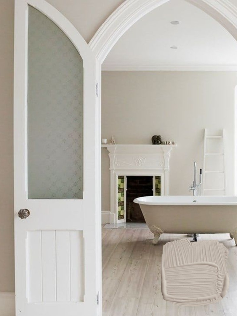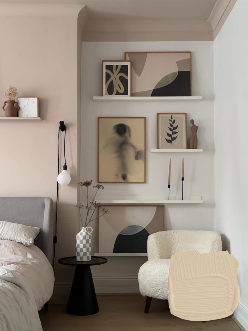 This is a classic grey and a great option for any space. It’s a very pale taupe and has a cooler appearance than a cream or beige of the same depth so it’s more flexible in what it can be paired with. For a dramatic contrasting, pair it with deeper blues and violets like our Midnight Teal or Mauve Mist. Personally, I like to keep this colour simple and use with tonal shades of grey for a more modern look.