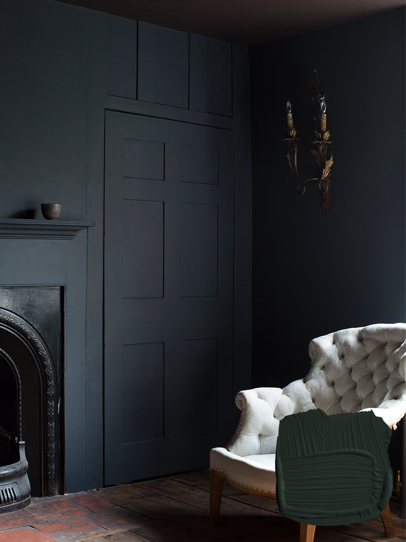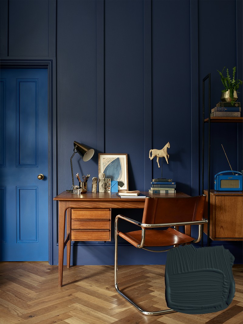 This is a deep, sumptuous navy that once would have been exceptionally expensive to create – it retains some of that extravagance with its ultramarine, deep violet undertone. It works well with other blues in a tonal scheme as well as in combination with crisp neutrals such as Edelweiss White or Quartz Grey. With its moody, evocative feel, it’s an ideal wraparound colour in a study or office.