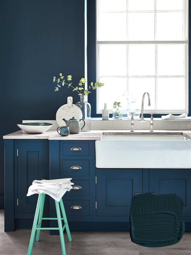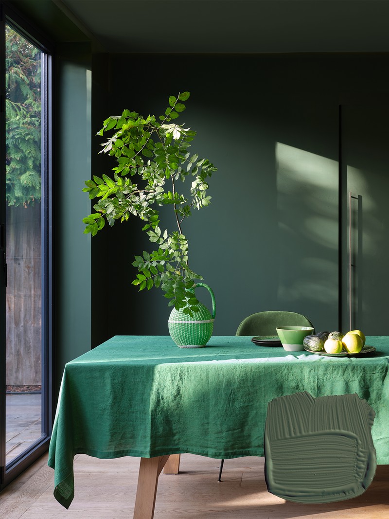 Stone Green is a personal favourite, too. It’s a mid-grey green that has natural connection to materials like granite and marble with its muted tones reflected in their flecks. It’s a sophisticated and versatile shade, and its relatively neutral in tone, so works well with numerous colour families. I like how it sits with pinks and terracotta shades.