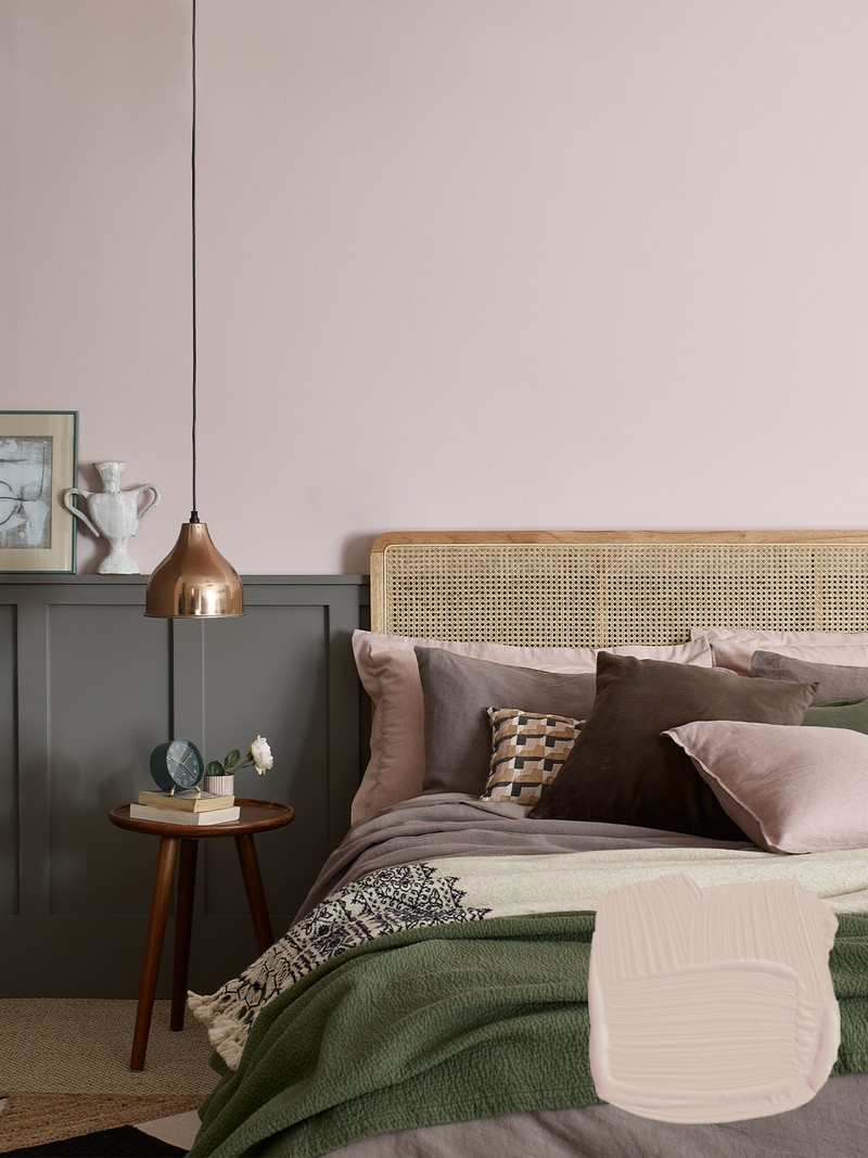 In recent years pink has found its way into every corner of the home. Soft pinks like Confetti are particularly popular, as they provide warmth to a space while remaining light and welcoming. It contrasts well with darker colours such as Lamp Black for a bold kitchen space, or moody greens like Livid for a contemporary take on a classic pink and green pairing.