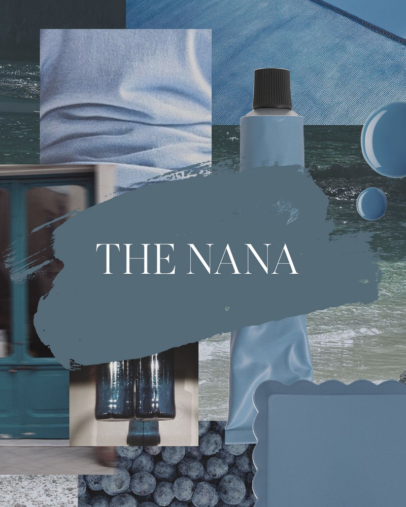 Atmosphere is key in a home office and this pairing is polished and East Coast-inspired – timeless, confident and characterful. The Nana envelops the walls in slate-blue depth, cocooning the space and encouraging focus. The Lu then steps in on the ceiling and trim, lifting the look with its creamy neutrality.