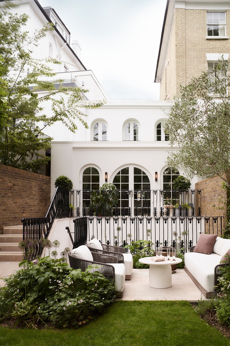 When we first visited the original house, it was sad how little space had been left for the garden. It had been heavily paved, with large concrete planters dominating visually. The first move was to reintroduce a sense of greenery and nature. From there, the design responded to the new classical language we developed for the rear façade of the house. We were aiming for something calm and ordered, but softened with gentle curves, and a planting layout with a clear sense of rhythm.