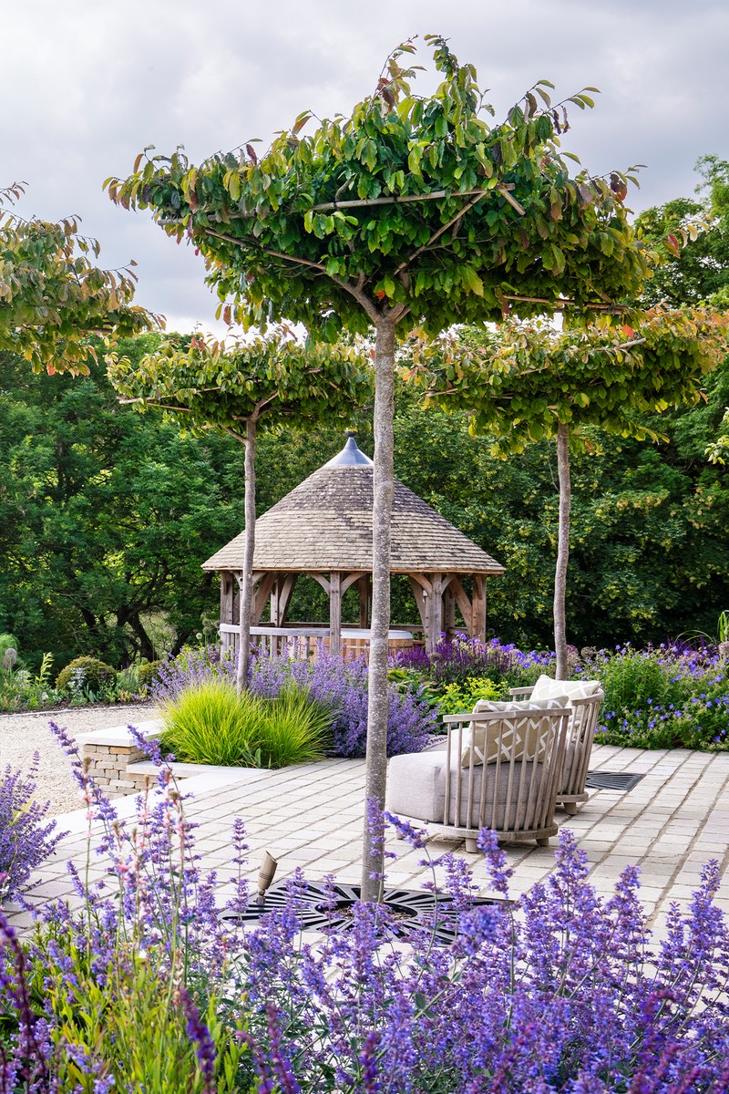 This garden is based in the Cotswolds. It’s on the site of an old stables and kennel so we wanted to honour both the classic materials of the area (think dry stone walling and buff stone) and the stable yard feel. The client wanted a multi-zone space to entertain and relax, so we included several different seating areas, each immersed in abundant planting so it didn't feel too hard.