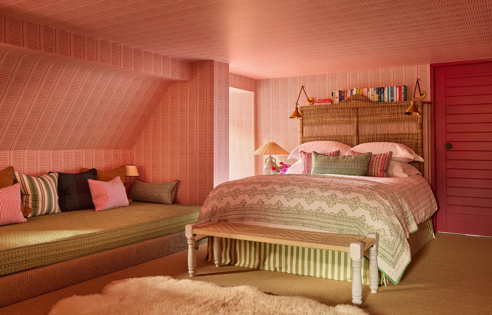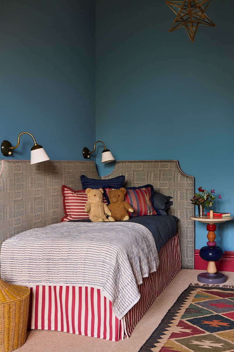 Playful but not childish was the brief – and this was important for longevity. In the bedrooms we used contrasting red woodwork for energetic detail. All the rooms are future-proofed: sockets, wall lights and the layouts are all designed to evolve with them.
