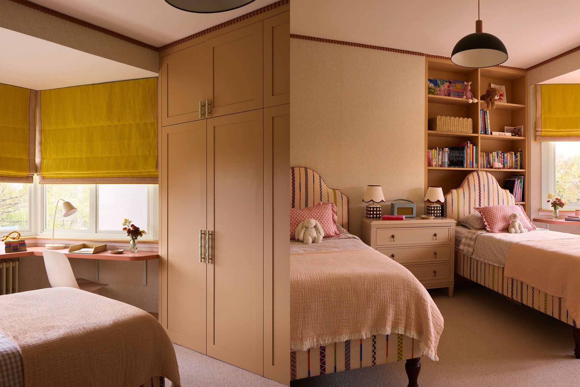 The brief was to create a shared bedroom that felt feminine but not overly “kiddy”, ensuring longevity as the girls grow. We introduced softness through colour and textiles, balancing playful elements with more timeless choices. The result is a space that feels sweet and inviting without being saccharine so that it's adaptable enough to evolve with them over time.