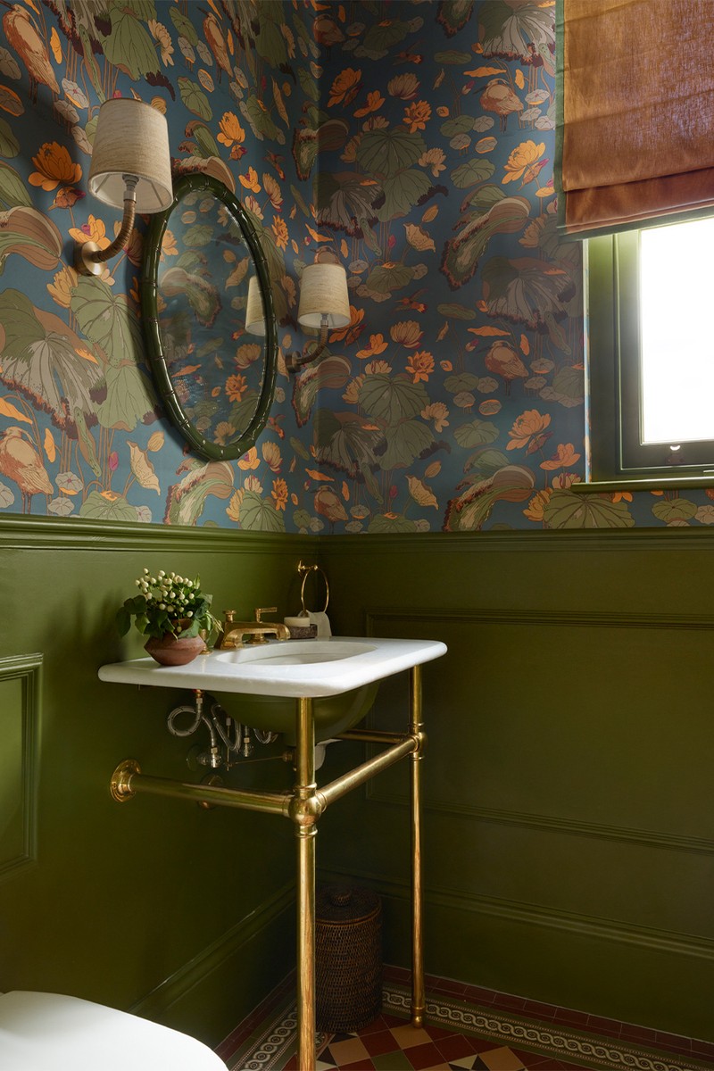We envisioned an aquatic theme for the space, and the stunning ‘Nympheus’ wallpaper by GP & J Baker served as the perfect starting point. Its vibrant yet sophisticated design brought a sense of fun while maintaining that elegant, grown-up feel. To complement the look, we incorporated a beautiful bamboo mirror from Salvesen Graham and added woven wall lights by Porta Romana.