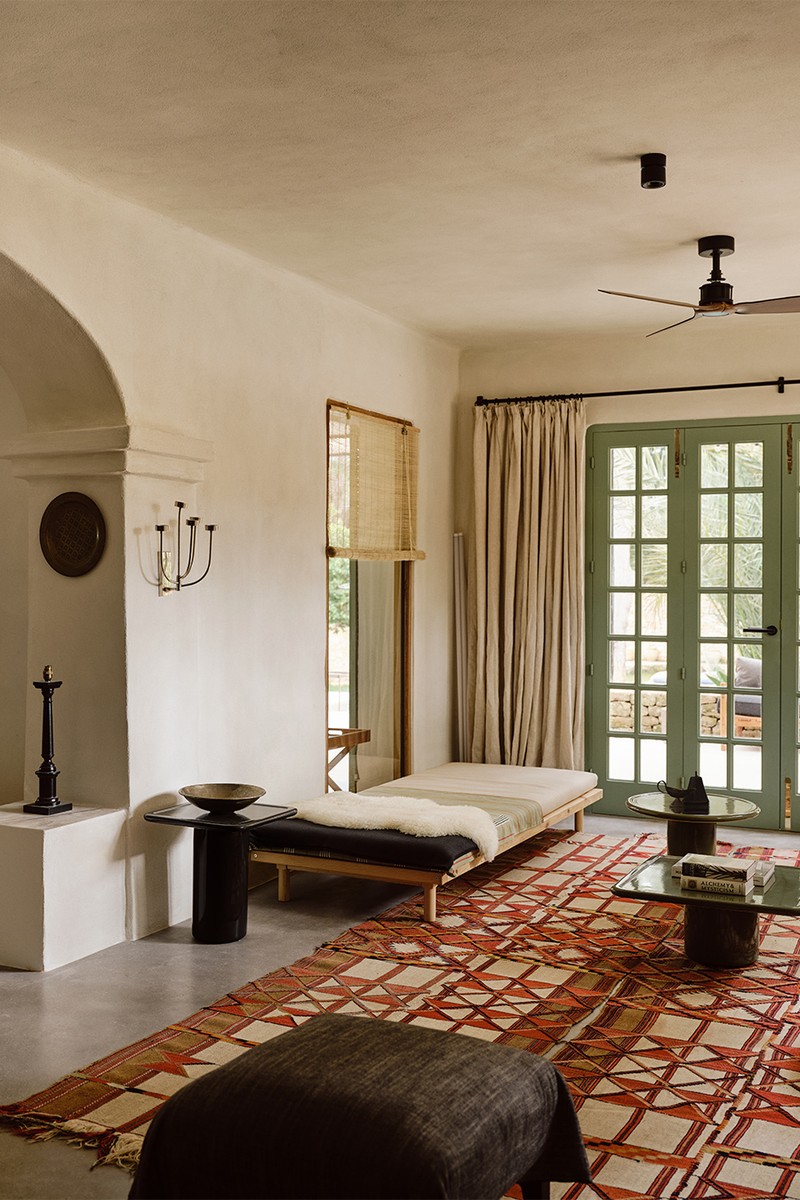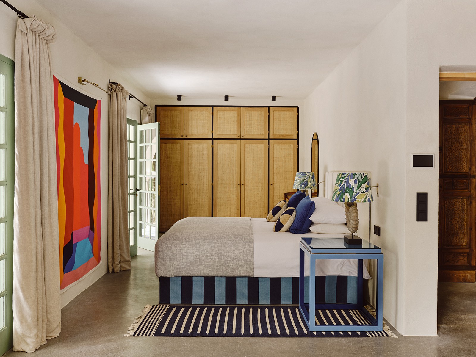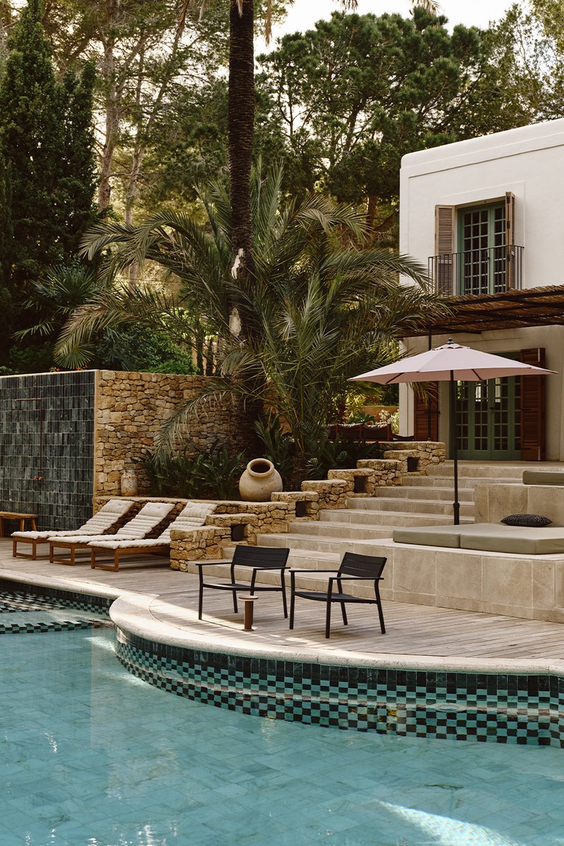 Can Linda is a double-storey villa situated in the north-east of Ibiza, between Santa Gertrudis and Santa Eulalia. It was built in the 1970s and has undergone a transformative three-year refurbishment. Originally drawn to the home for its unique setting within a mature garden of palm trees and cypresses surrounding a large pool, I saw the potential beneath the surface of a worn but glamorous residence. The existing elements – from Carrara marble flooring to an oversized bathtub and some California Regency style furniture – hinted at its past and provided a strong foundation for the design.