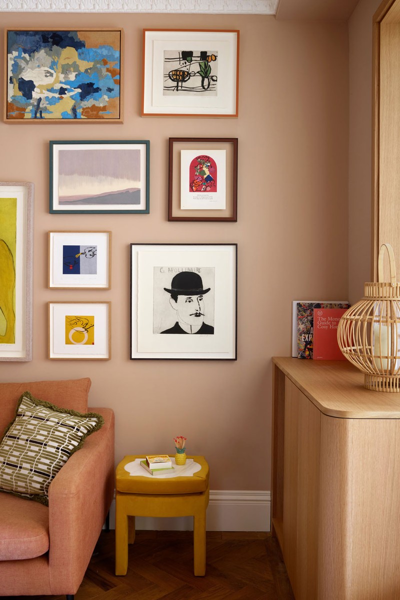 Art and craft became the unifying threads. Working with Gilly Thorne at leading art consultancy Cramer & Bell, an array of thoughtful artworks that reflect the couple’s love of travel and storytelling, including a couple of custom commissions, were chosen. Bespoke cabinetry also played a pivotal role, and we collaborated with London cabinetmakers Jacob Alexander and Stuart Indge to create one-of-a-kind pieces that add unique character to the spaces.