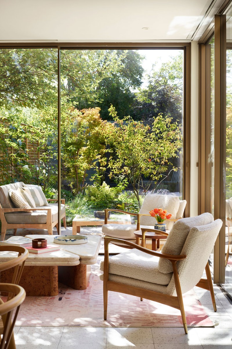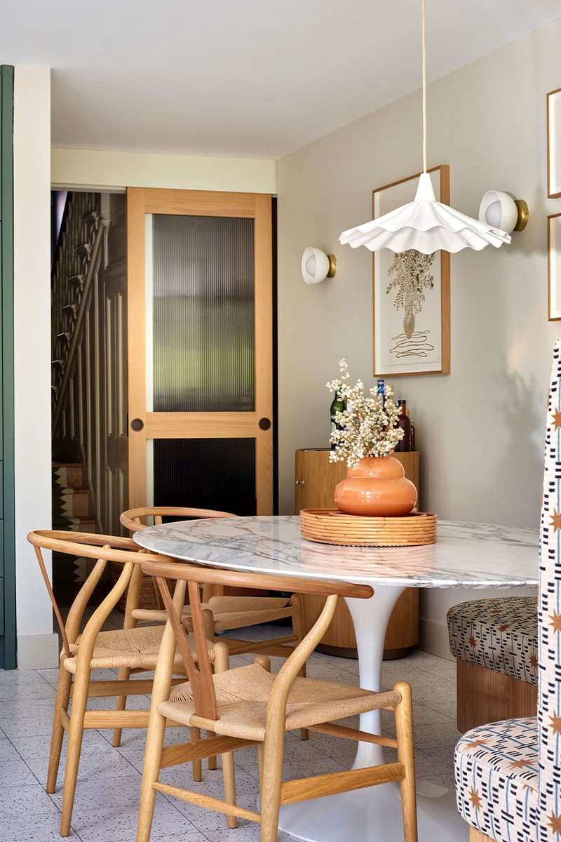 The brief was to re-centre the dining area within the kitchen, creating a more intimate and convivial heart to the home. With space at a premium, we designed a custom banquette and a slimline island that gave the room flow without sacrificing comfort. The glass extension then became a new, sociable seating nook, a place to pause with a cup of tea or gather casually with friends and family.