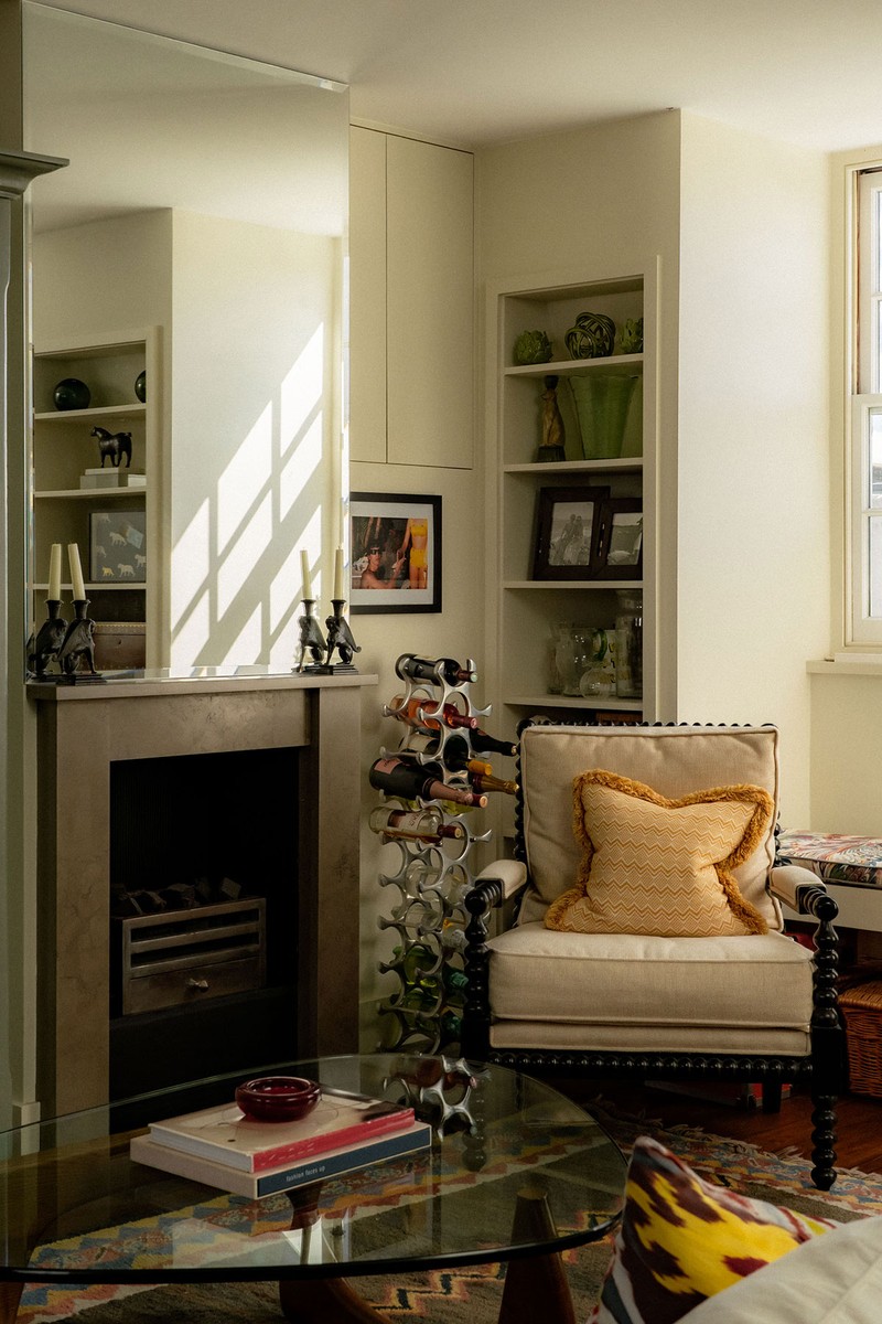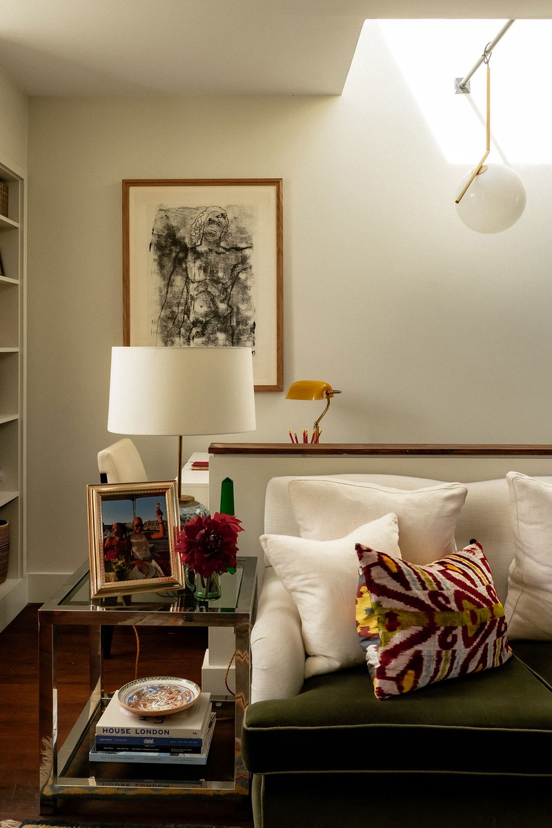 This two-bedroom apartment in west London occupies the top two floors of a Victorian building above a bakery and a dry-cleaner. Before I bought it, the flat had been squared off in the eaves room with built-in storage and window seats, but it had been rented out and poorly treated. I stripped it back to basics and used my budget to make it my perfect home. The layout has a living room and kitchen in the eaves, with the bedrooms below, and every inch of space has been carefully thought out. I live there myself, and while it wasn’t a full structural renovation, I personalised and updated the flat extensively to suit my style.