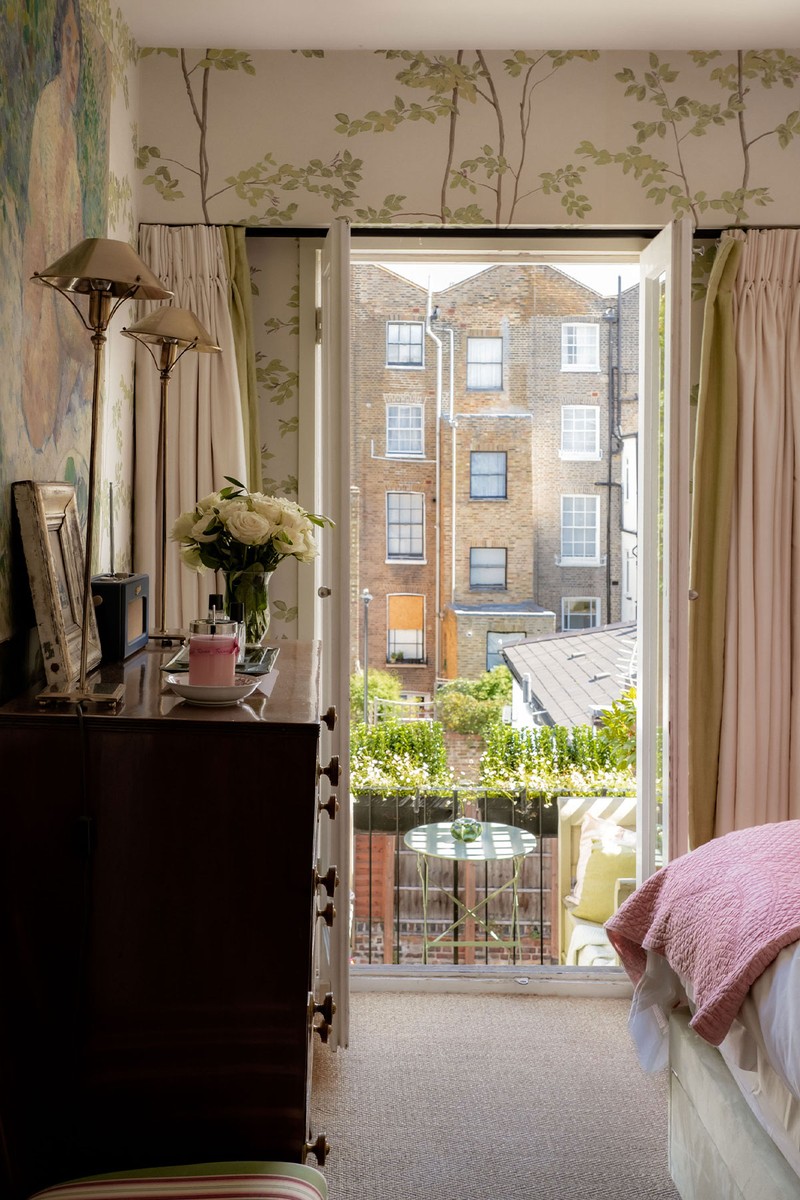 The compact terrace overlooks the rear gardens and is a really important slice of outdoor space for me. Even though it might not seem the most practical, since it leads off the bedroom rather than a living area, I’ve actually found it incredibly sociable. Friends often hang out here while I’m cooking or getting ready, and I love keeping the doors open morning and evening.