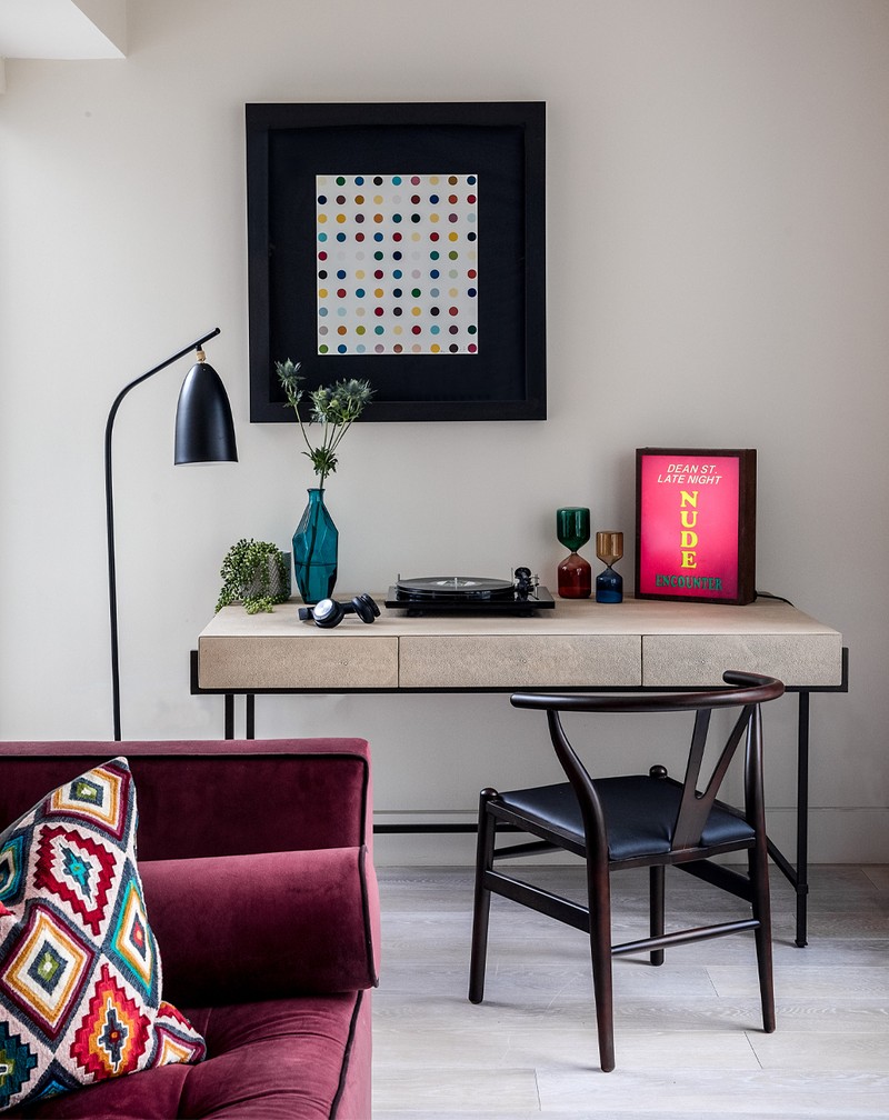 Our latest project is one of my absolute favourites. Each project has elements I love, but this one – a stunning apartment we designed at The Dumont, a luxury new development on Albert Embankment by developer St James – is a standout. We designed it amid the backdrop of the pandemic, which was challenging, but it made us think differently about the importance of a home. We introduced lots of vibrant and bold colours to lift the spirits and enhance the natural wellbeing of the residents. The apartment also has a fabulous view over the Thames, so we took references from that, too.