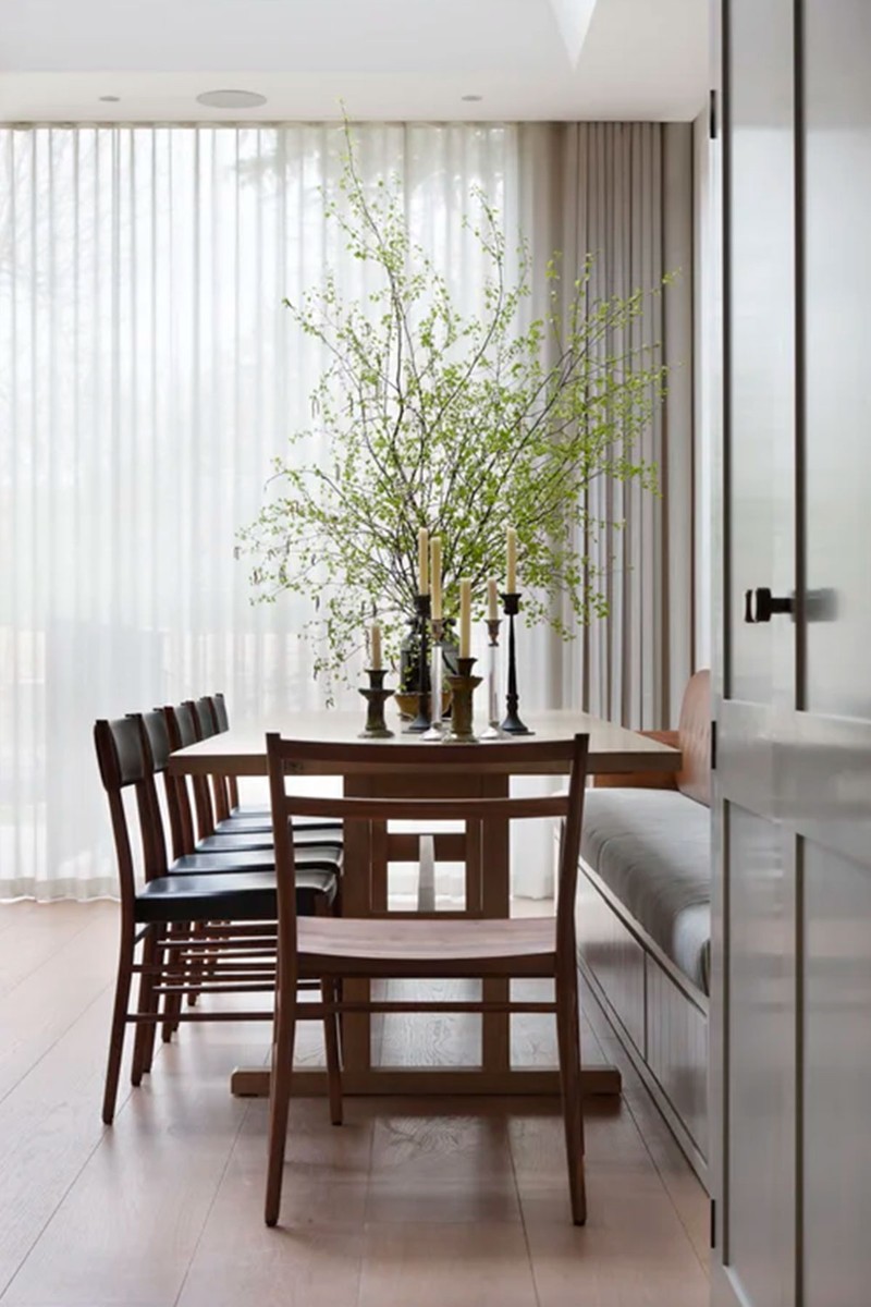 “You need to think about access and how practical it actually is, especially if your dining table is an everyday type of dining table. In most instances, a successful corner banquette tends to be a breakfast nook rather than a proper dining table, as the vibe tends to be a little more informal.”
