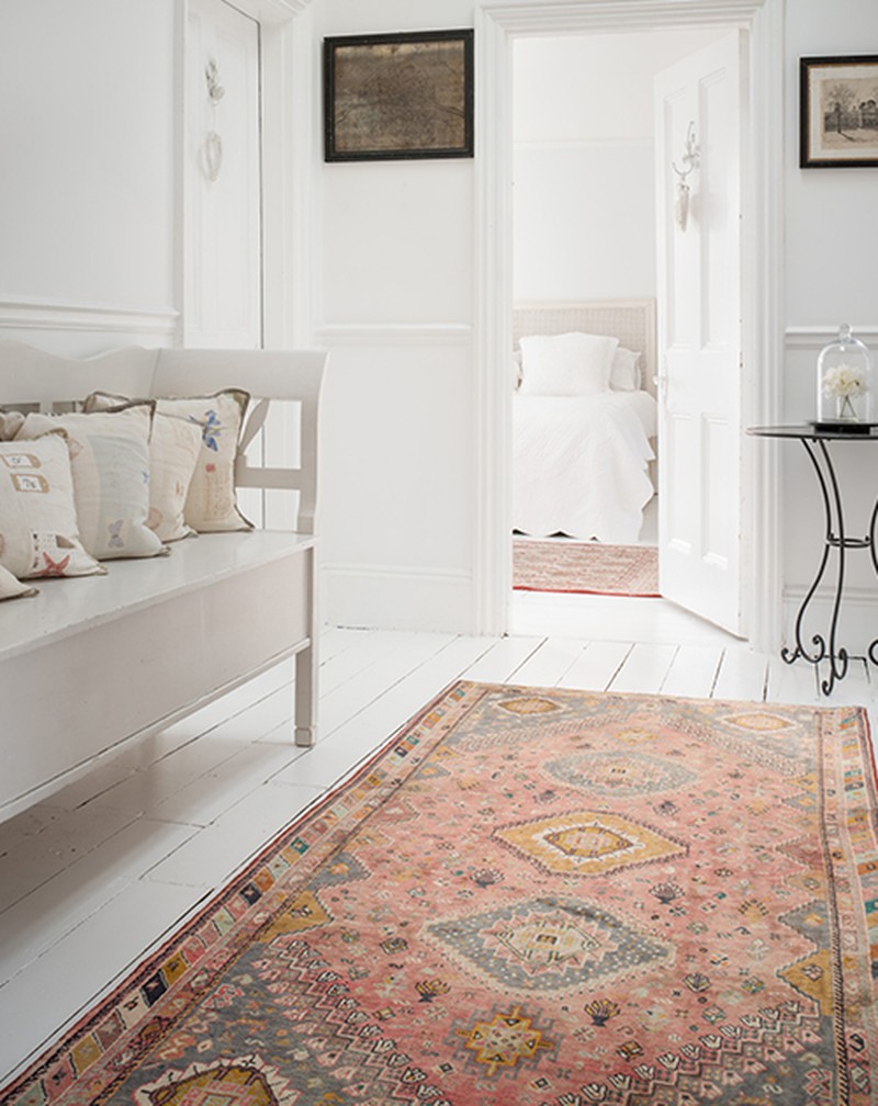 “Classical berbers, vintage dhurries, Turkish kilims and antique herat carpets are the styles of rugs we use because of the softer, aged feel they have,” says Sarah Vanrenen. “They are all made from natural fibres, mainly wool, in beautiful natural colours and the texture of the weaves adds interest to a space.”