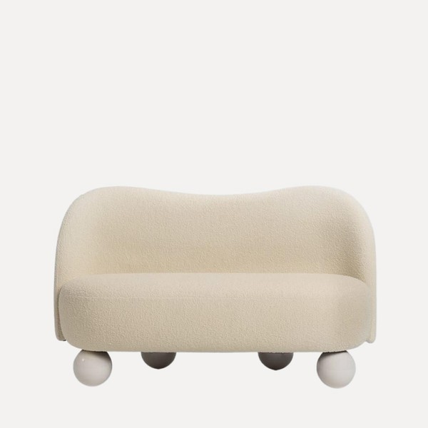 The aim was to create an inviting breakfast/dining nook with a nod to the mid-century era, but also a modern twist. Using earthy colours such as moss green and dark cerise, the interior feels warm and balanced, sophisticated and timeless. The bouclé trend is proving to be here to stay, but this organic-shaped sofa adds an unexpected touch in the glossy lacquer ball feet. A pedestal dining table made from sustainably sourced rattan, along with retro striped upholstered chairs, complete the ensemble. The vintage 1980 drinks trolley is small in size – I love the eccentric shape, while its plexiglass construction offers an unobtrusive and whimsical impression. To zhuzh up the tablescape, I love this dramatic bamboo trim porcelainware that continues the playful, organic theme, along with scalloped linen napkins and Italian-made burnished brass coasters.