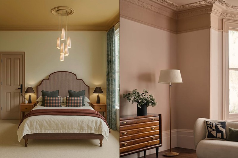 “In north-facing rooms, colours can read deeper and cooler, so go slightly warmer than you think. For south-facing, richer or slightly greyed-off tones will work well. Application tip – tester pots will be important to use here as colours will look slightly different on the walls compared to the ceiling.” – Laura Jolly-Yan