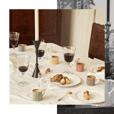 Artemis Deco was founded by husband-and-wife team Maja and Toby in Maja’s parents’ kitchen, which was bursting with beautiful ceramics they’d collected on their travels. Today, Maja and Toby work with local artisans to produce collections that create the same sense of nostalgia. The latest is a striped ceramic collection called ‘Vacanza’, carefully crafted in a small hill town in the Italian region of Umbria.
