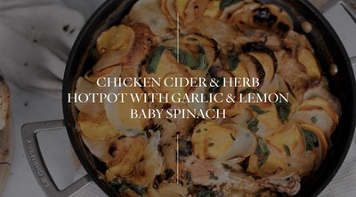 Just before serving, add a splash of oil to a pan. Add 1 chopped garlic clove and stir-fry for 30 seconds, adding the spinach with a squeeze of lemon, season and remove once the spinach has wilted. Serve the chicken hotpot with a side of spinach and crusty bread.