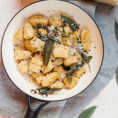 Preheat the oven to 180°C. Roast the gnocchi with olive oil and seasoning for 15 minutes, until cooked through.