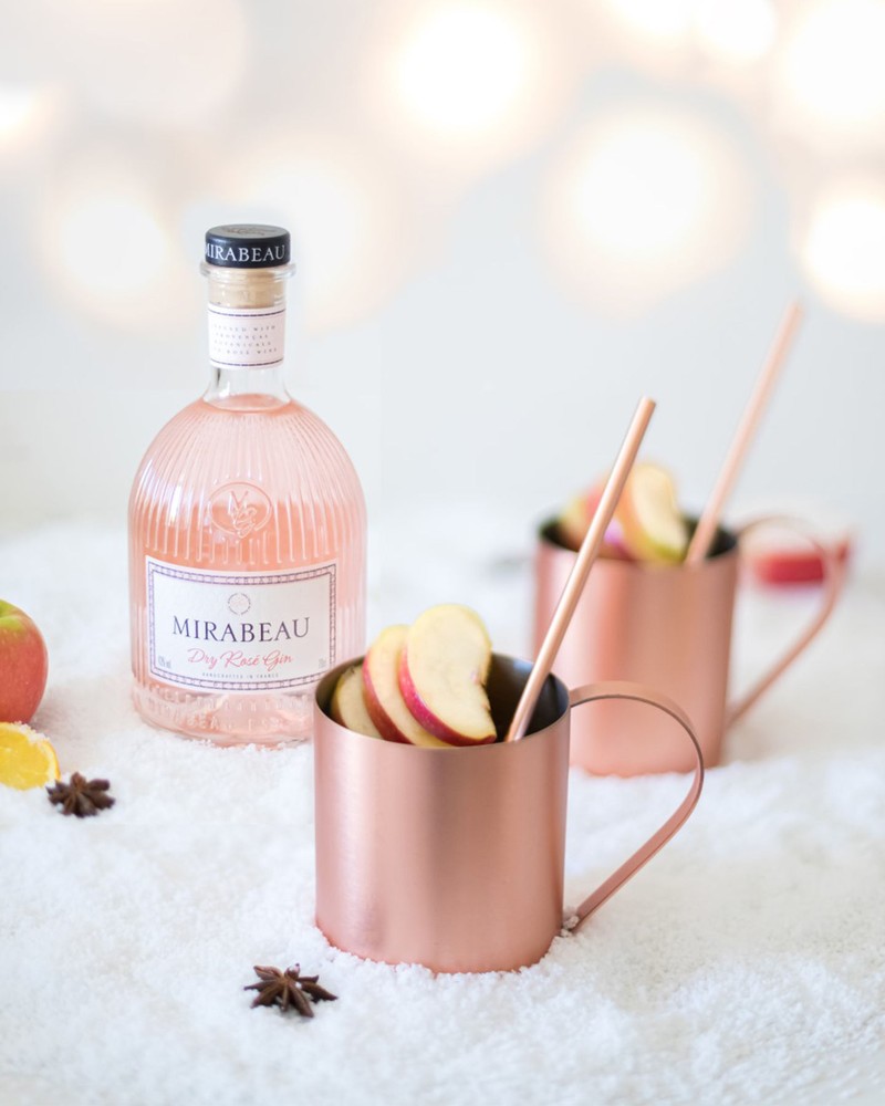 Gently simmer all the ingredients together in a pan – except the gin – for two minutes. Then add the gin.