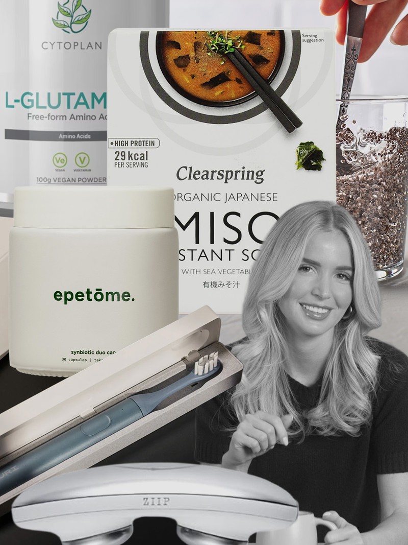 My supplement routine is refined over years of trial, travel and error. I take Equi London multivitamins daily – they come in capsule or powder form, which means I can switch depending on my travel rhythm. Bare Biology’s omega 3 capsules are another staple, not only for inflammation and heart health but for helping my brain stay sharp through jet lag. I always travel with Ancient + Brave sachets, too. True Hydration for electrolytes, True Collagen for skin support, and True Creatine+, which supports cognitive function, energy and mood, especially under stress or sleep disruption.