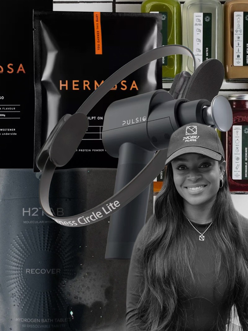 I travel with a micro gym. It fits in my suitcase and includes resistance bands, a Therabody Mini for recovery, and a Pilates ball that packs flat. I’ll work out in hotel rooms, pop into the gym if one’s available or just get my steps in – at least 10,000 a day. My go-to shoes are APL TechLooms – they’re light and supportive.