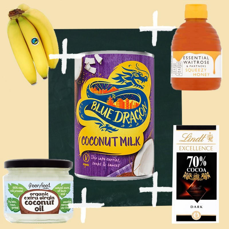 In a blender, blitz the banana with the coconut milk and honey. If you want to add anything else to the mix – like a pinch of cardamom or cinnamon – now’s the time.