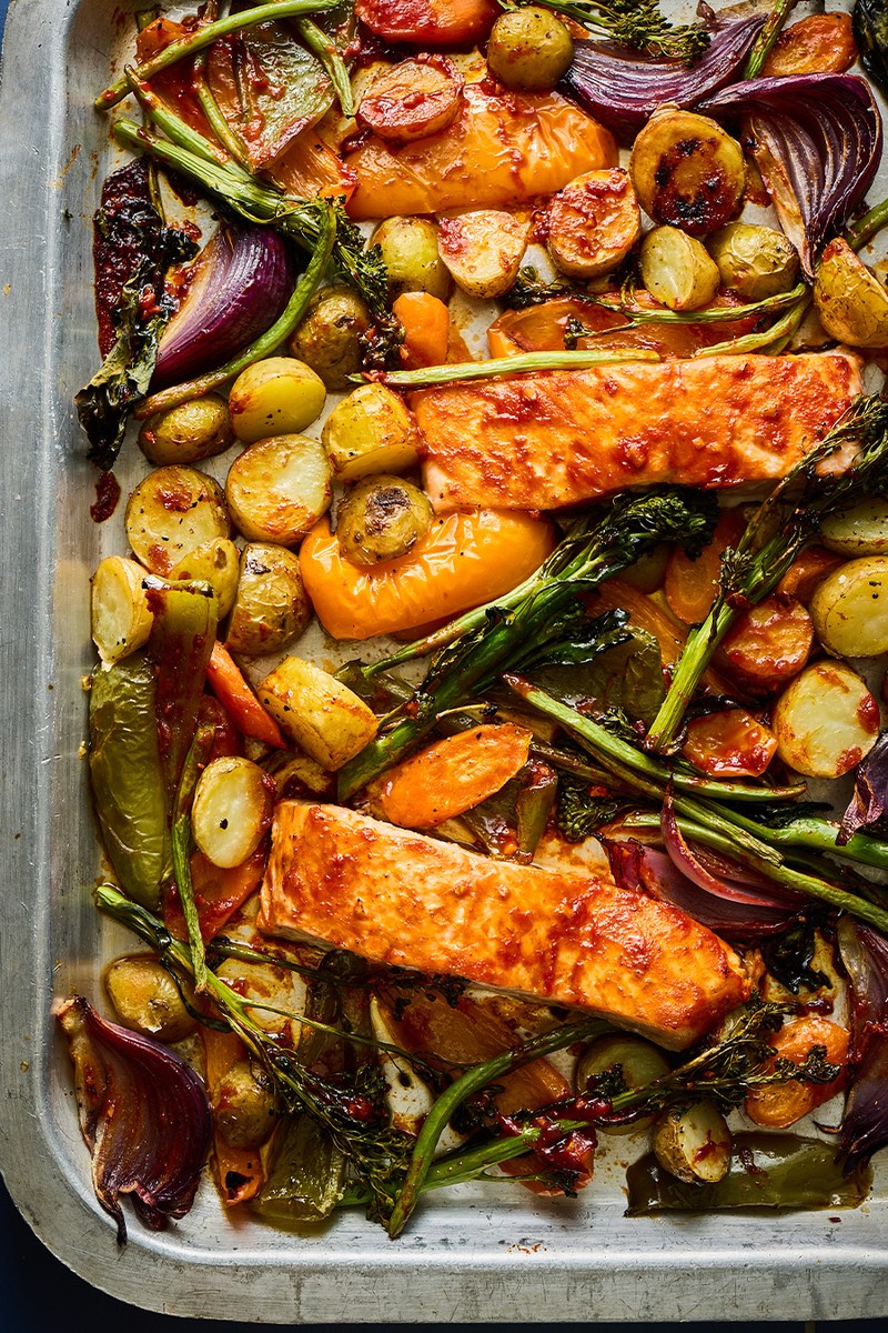 Gochujang Salmon Traybake