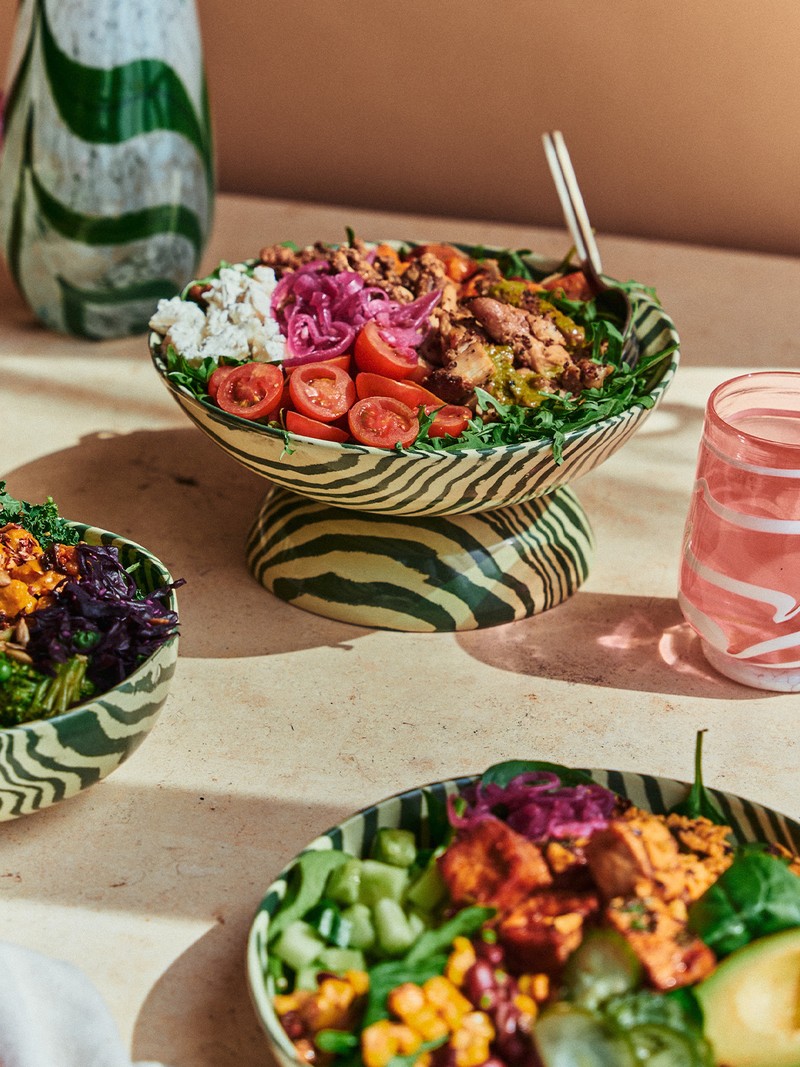 The Salad Project has launched its first homeware collab with Henry Holland Studio – a limited-edition ceramic collection made for everyday dining. Each piece is hand-built in Hackney using the Japanese Nerikomi technique, with layered coloured clays forming one-of-a-kind bowls and chalices in a custom Salad Project palette. Available exclusively via the link below.