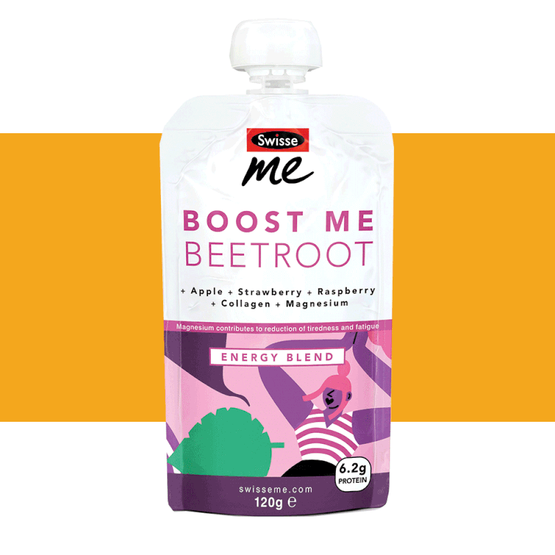 Swap your usual 11am snack for one of Swisse Me’s energy-boosting heroes and rest assured you’re ticking all the nutritional boxes. Simply squeeze and savour, these healthy snacks are packed full of ingredients designed to give back. Take, for example, Boost Me Mango, a tropical concoction with added collagen, turmeric and magnesium to tackle tiredness and fatigue; Boost Me Spinach, brimming with maca, an adaptogen believed to supercharge endurance; and Boost Me Beetroot, naturally rich in nitrates to help you beat the dreaded afternoon slump.