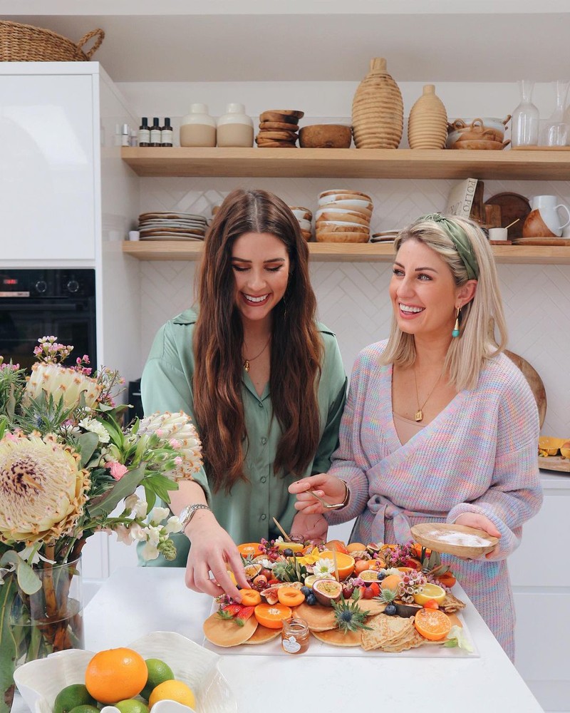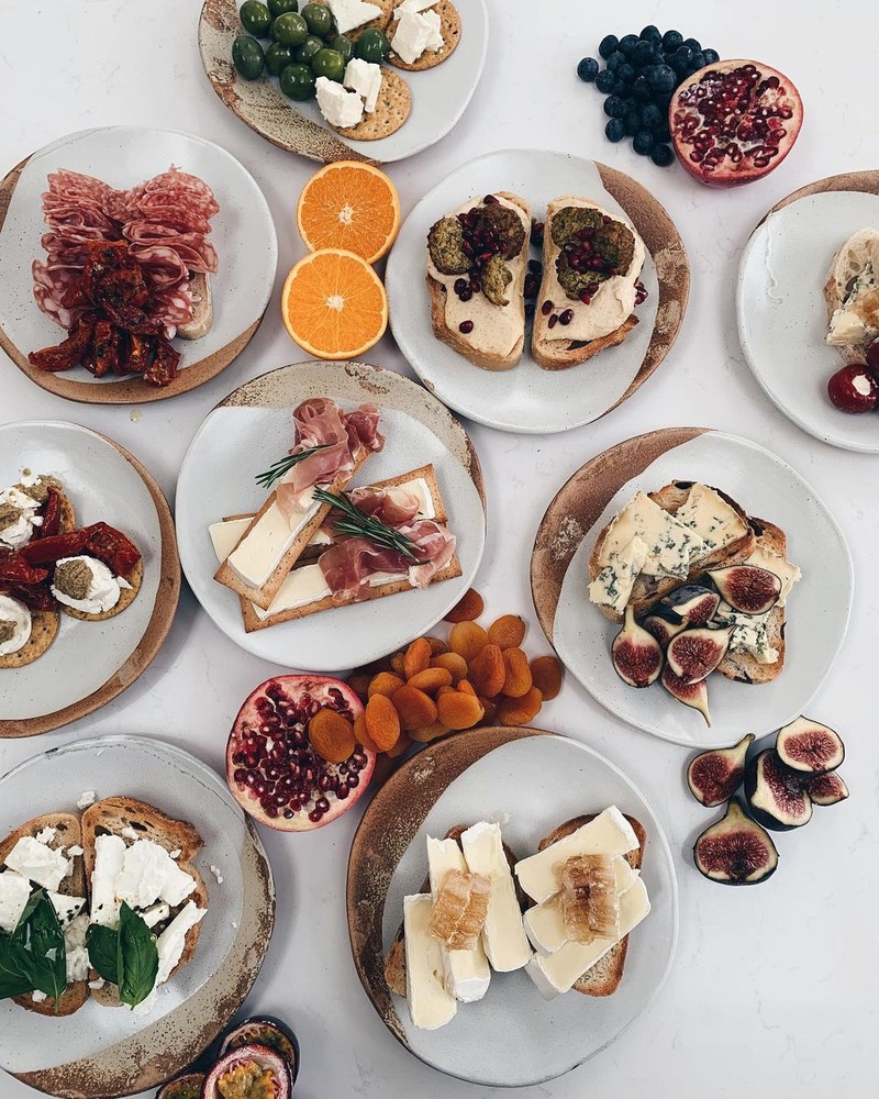 An antipasti sharing platter is one of our go-tos, served with fresh crusty bread. Just make sure you take everything out of the fridge an hour beforehand to ensure your cheeses get to room temperature. As for must-have ingredients? Fresh tomatoes and mozzarella, manchego, prosciutto, artichoke hearts, sun-dried tomatoes and nocellara olives. Those are the non-negotiables!