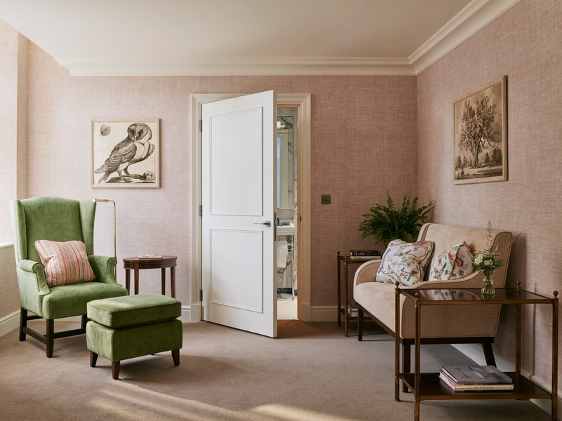 Bedrooms are spacious and serene, each with an en-suite wet room and the option to personalise with treasured belongings, or redesign if you wish. Shared spaces include a spa, cinema, library, separate cosy sitting rooms and private dining rooms, while the gardens – designed by Randle Siddeley – offer a tranquil retreat that enhances wellbeing and invites connection.