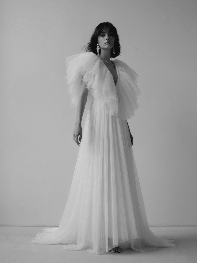 Winter weddings call for a bit of drama – think feminine ruffles, directional silhouettes and fabrics made for low lighting and late nights. From sculptural minis to sweeping trains, these are the styles guaranteed to turn heads…