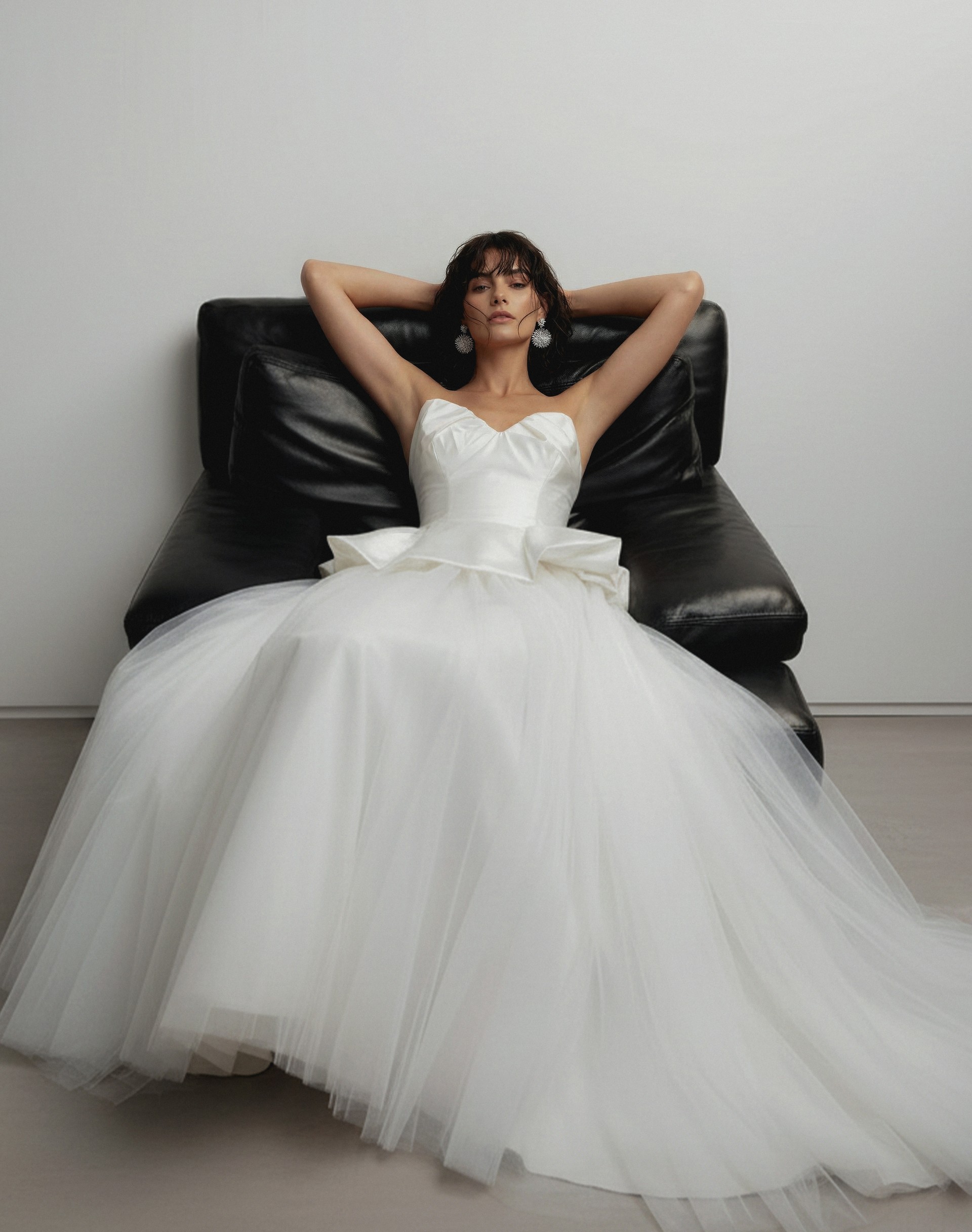 “Vivienne Westwood turns bridal tradition on its head with serious volume, structured tulle and satin detailing.”