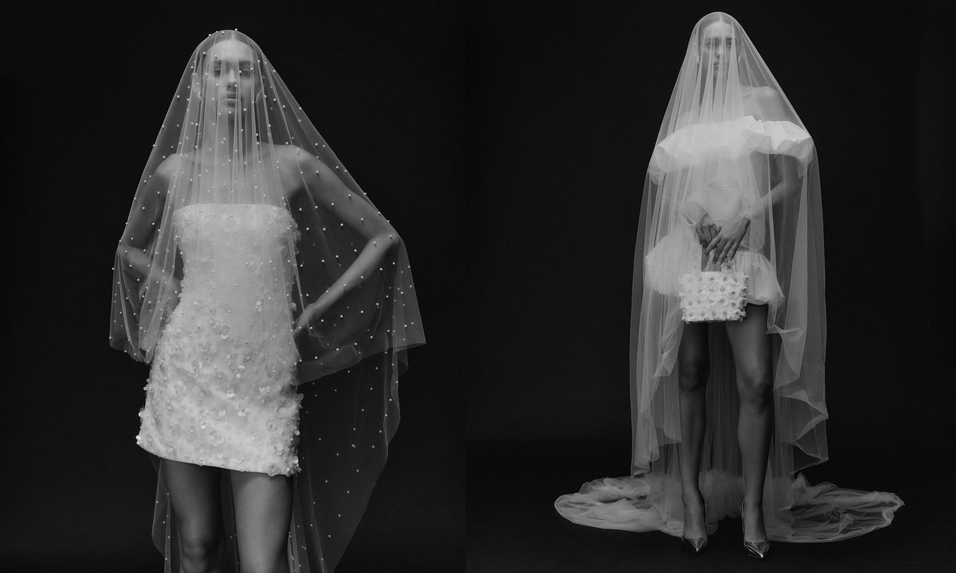 The debut veil line from Australian designer Christie Nicole includes 12 veils in a monochrome palette, each designed to pair with any Christie Nicole dress. Inspired by the mystery of midnight, the statement veils are handmade from soft tulle and adorned with pearl beading, delicate bows and 3D appliqué motifs. Perfect for fashion-forward brides, prices start at AUD$550, with all pieces available to ship internationally.