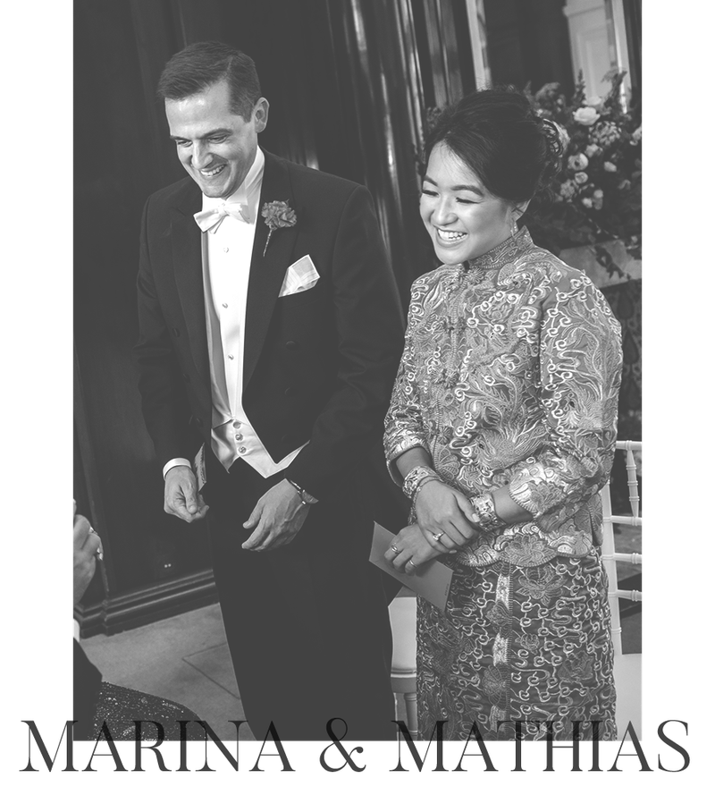 “We had our civil ceremony at the BMA House in London and it was officiated by a humanist celebrant who personalises weddings to all beliefs. It took place in two parts. The first half was a Malaysian Cantonese tea ceremony to reflect each of my parent's backgrounds before we had a break to hand out personalised macaroons with the Chinese character of happiness on them – a traditional European sweet treat to demonstrate our union. The second half of the ceremony was a traditional Western one, where I walked down the aisle accompanied by my dad, and Mathias and I wrote our own vows and exchanged rings as a symbol of our commitment to one another.