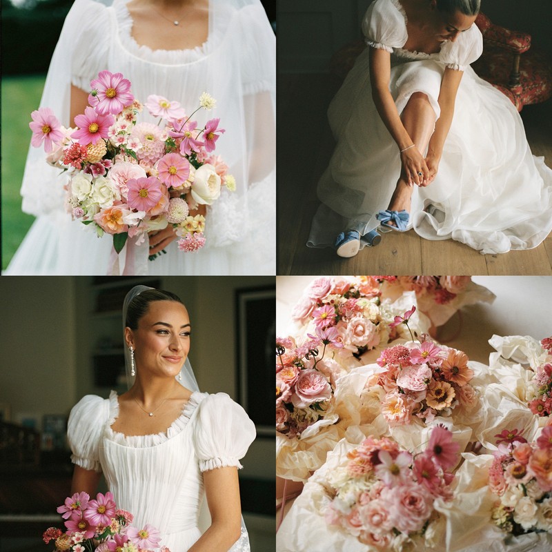 We used a floral design studio called I Think That You Are Magic. Hannah is in charge and she's incredible. She said the entrance to the church should have a dreamy secret garden feel – as if the flowers were growing in and around the structure. We spoke a lot about the concept of ‘dancing’ flowers. She then used a lot of what we had in the church in our marquee, repurposed in tiny bud vases, and she also did my bouquet and flowers for the bridal party. ‘Ethereal’ is probably the best word to describe it and I was always clear about having lots of colour. I wanted it to feel joyful.