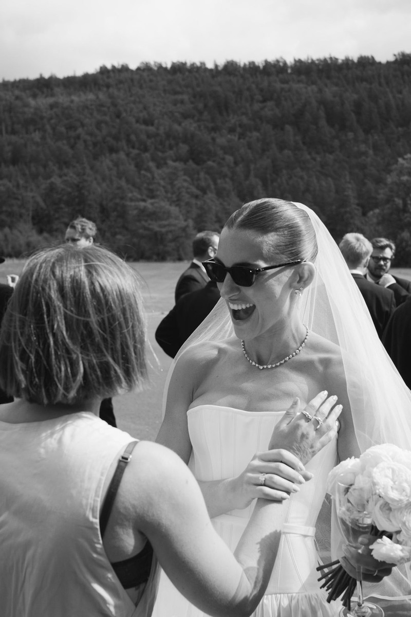 I wanted the next day to be just as big as the first day. It was a bit of a lock-in that got out of hand! It started off with a dip in the river and then everyone arrived at the party at 1pm. The theme was ‘Scottish Alpine Disco’ and I wanted it to look like a Slim Aarons photograph. There were lots of bloody Marys and we had a hog roast and a Norwegian-style wedding cake. We also hired a DJ from Compact Disco Defender. He drove Mikkel and I into the party and the vibes just went from 5%-100% in seconds. The party went on until about 7pm but anyone staying at the venue lingered on.