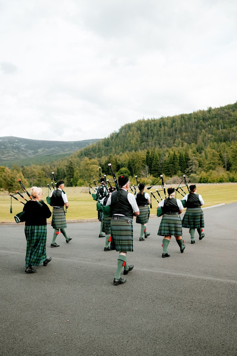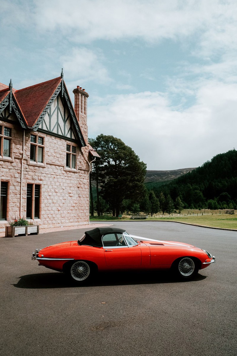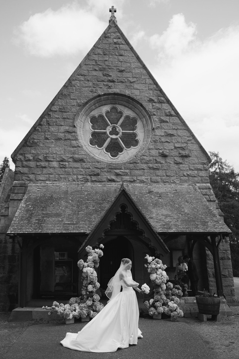 The ceremony started at 2pm, which left time for Mikkel and I to go for a walk in the morning, which is when we swapped presents. Then it was time to get ready and go. We borrowed The Fife Arms Range Rovers to take the girls, my mum and other family members to the church and then dad and I drove in his E-Type Jaguar. When we arrived, there were lots of locals milling around because this is the church the royals use when they stay at Balmoral. I think they were disappointed to see I wasn’t one of them!