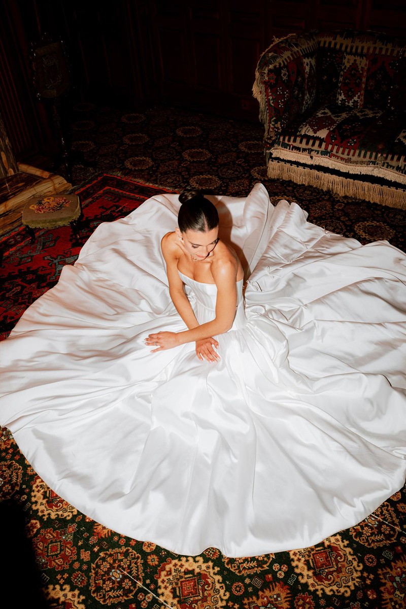 I did have a bespoke veil because I wanted something quite specific: 90s in style with a satin trim. And I wore my great-grandmother's gloves. They were about a hundred years old, so very fragile. I had to have all the buttons replaced and there were a few scuffs and tears to repair, but it was amazing to see the whole look come together. My shoes were Manolo Blahnik and I also went a bit nuts designing lots of new pieces for my jewellery collection, so I had all the bridesmaids, my mum, sisters and in-laws wear the jewellery. I also knew I wanted a second look and loved that my other dress – from The New Arrivals – was quite sheer and covered in sequins. I also swapped my Manolos for some trusty Reformation heels that I could honestly run a mile in. A good tip – wear in your shoes before the big day; you’ll be so glad you did.