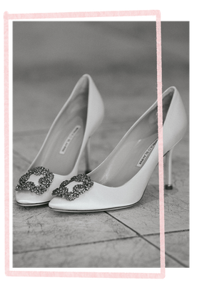 I knew I wanted the vibe to be more ‘black tie’ than ‘morning suits’ – we weren’t getting married in a church and I always look better in simple dresses as opposed to something with lots of frills and lace. I also knew I wanted to change into something short and fun for the evening, though – so the first dress would have to be quite different from the second. Our family has a long-standing connection with Browns, so I always knew I’d go to Browns Bride to find it. My first dress came from Lihi Hod and my party dress came from Mira Zwillinger. I then wore a beaded vintage bag that belonged to my grandmother and shoes by Manolo Blahnik.