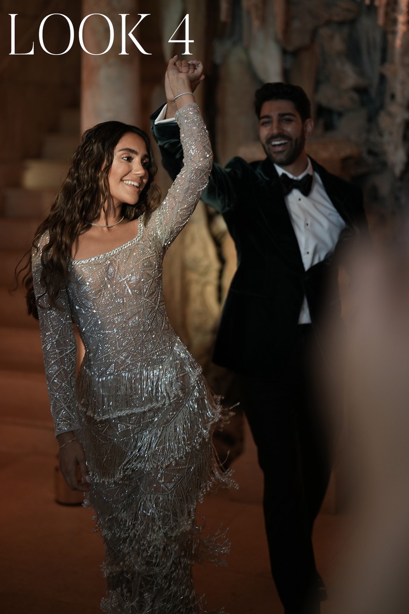I always knew I wanted multiple looks, but I had no idea where to start or what would suit me. I’d never tried on anything bridal before I was engaged, and I think that’s what can make it quite daunting for a lot of women. I brought my fiancé with me because we’ve been together 15 years and no one knows me like him. He’s also my best hype man and knows how to make me feel good about myself. He’s also completely honest and I knew I could trust his judgement. Ultimately, try to have fun with it – when else will you get to wear this many looks in as many days? Plus, you’re the one in control the dress code. Don’t overthink it either – follow your instincts and don’t take on too many outside opinions. If there’s anything I’d have done differently, it would probably be wearing a cool pair of trainers on the movie night – my feet were pretty sore the next day and there was still lots of dancing to come!