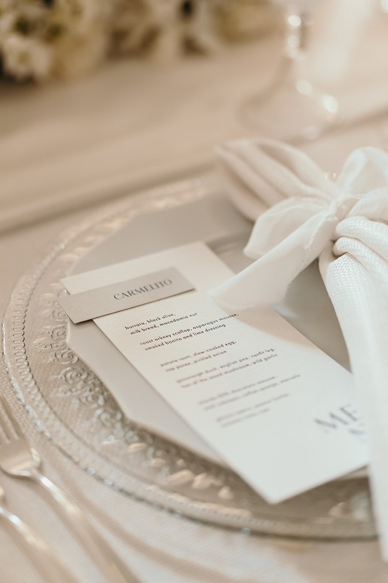The smallest detail that makes the biggest impact is charger plates. I cannot stress how much of a difference this makes to a table setup, and they aren't much of an additional spend. Your caterer or wedding planning can hire these in very easily, and there are endless options available.