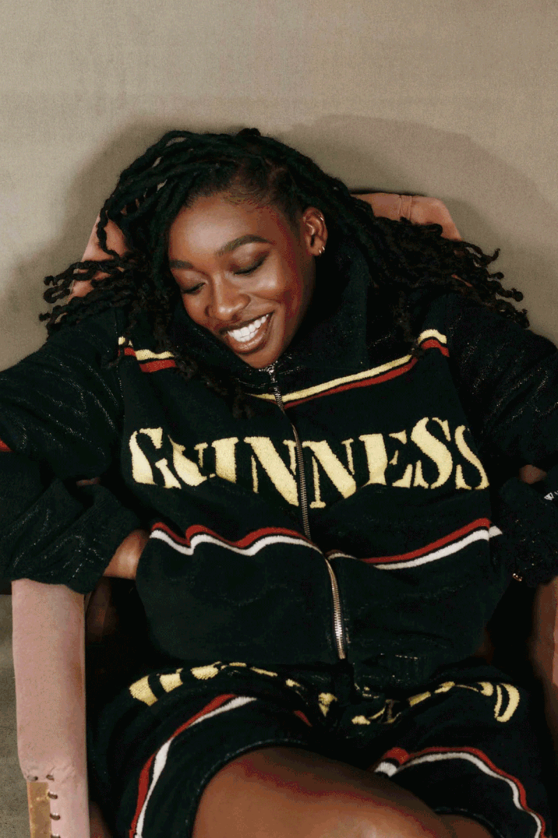 JW Anderson and Guinness are back with a second collaboration – and it’s bigger than the first. The 17-piece capsule draws on the visual language of Irish pub culture, blending Guinness iconography with Anderson’s playful design codes: workwear-inspired denim, twisted jeans and knitwear referencing the creamy head of a pint. Elsewhere, details nod to vintage brewery uniforms, pub carpets and even a poem pulled from a 1938 Guinness ad. Plus, the campaign stars Little Simz and Joe Alwyn.